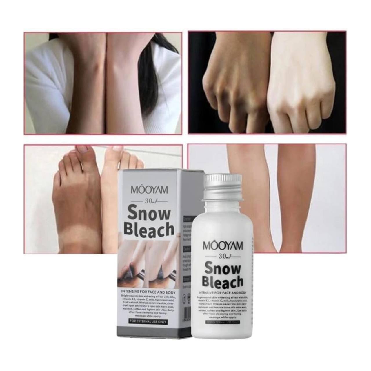 ✅️کرم روشن کننده صورت بدن و بیکینی Mooyam مدل Snow Bleach محصولی چند منظوره است که میتوانید برای روشن شدن پوست صورت، بدن و حتی نواحی حساس از آن استفاده کنید.