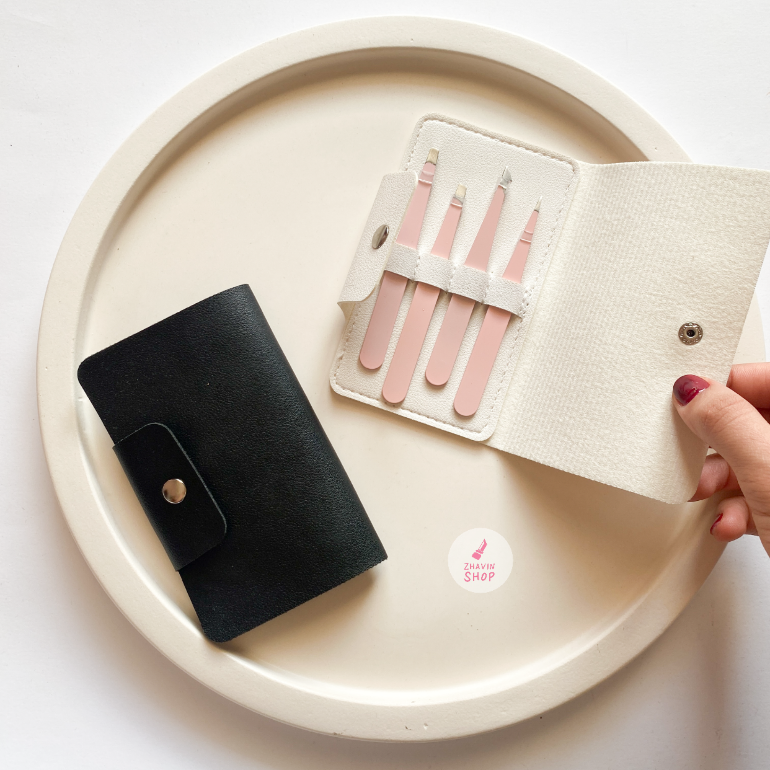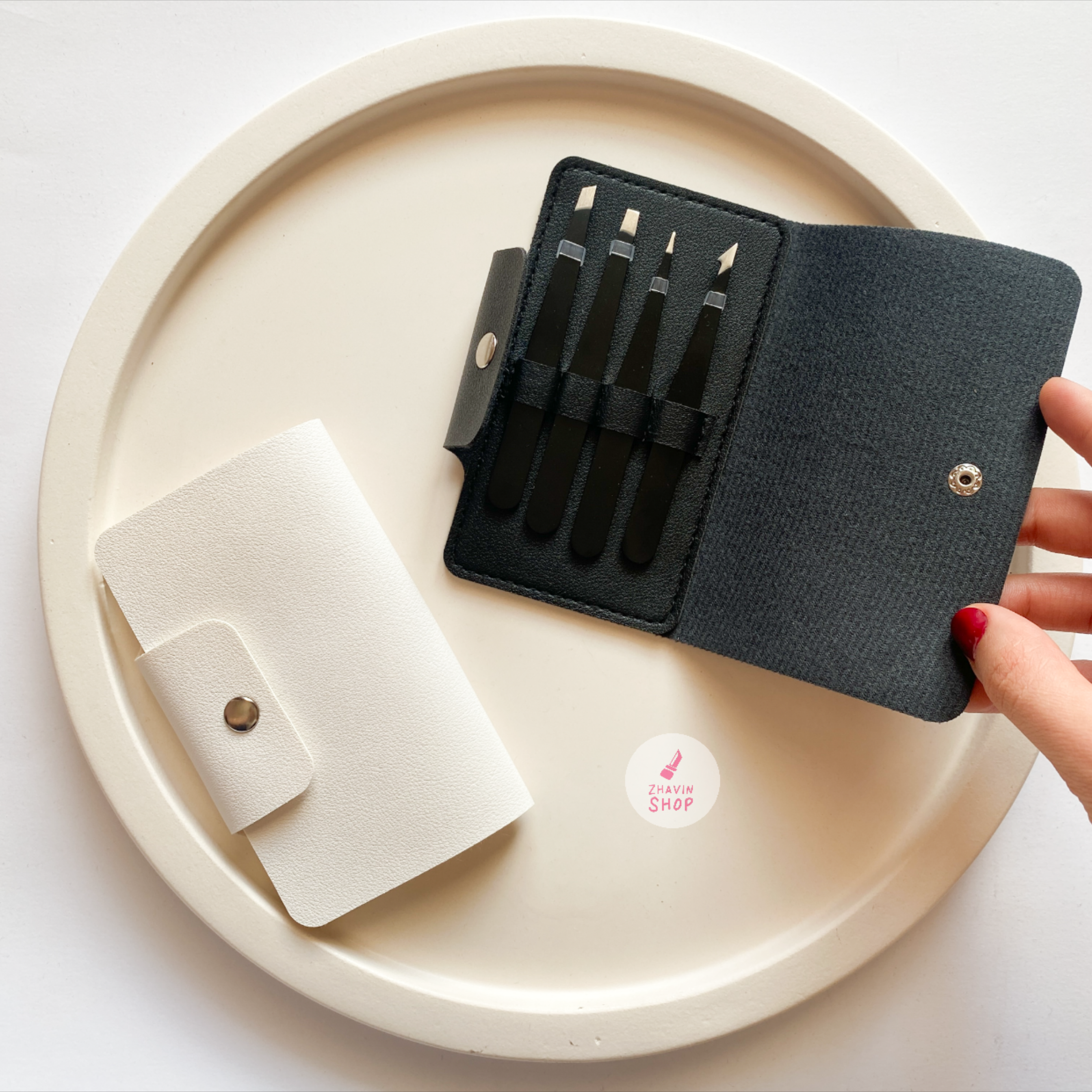 ✨️پک 4 تایی موچین برای موهای صورت و ابروی زنانه، برای موهای زیر پوستی، ابزار زیبایی روزانه چیدن با کیف مسافرتی چرمی برای هدیه